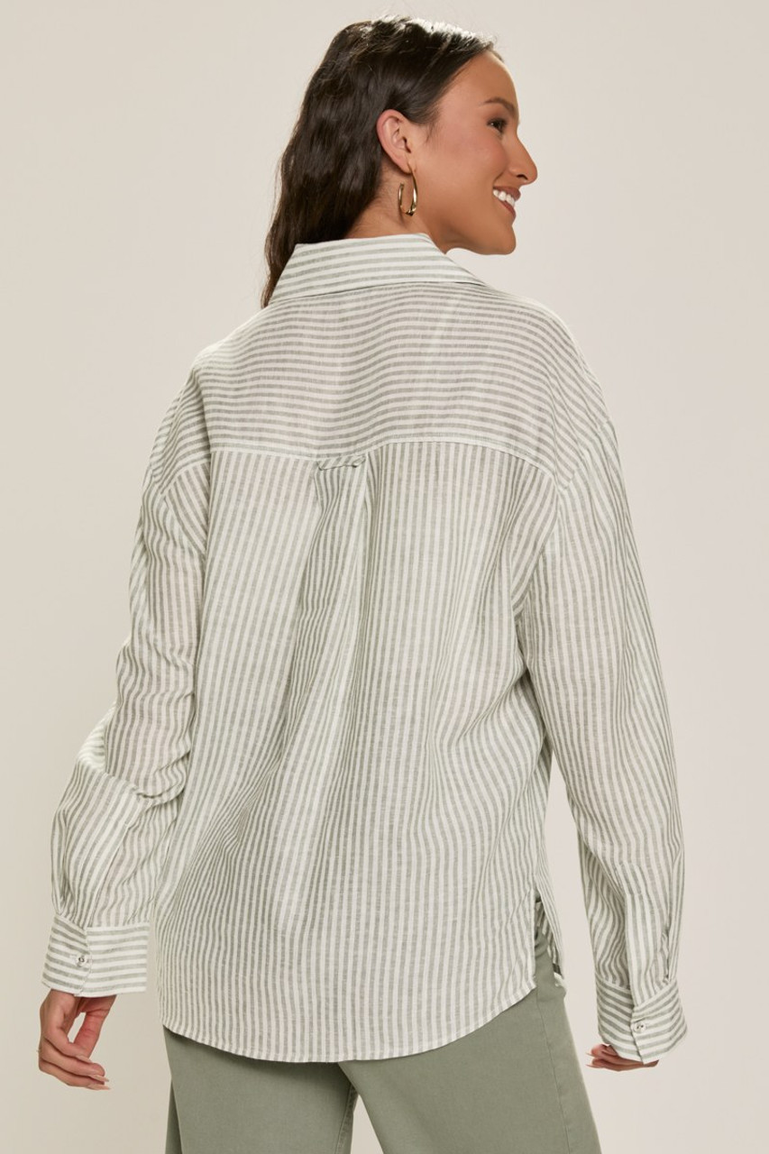 Angelina Striped Linen Button Down Top
