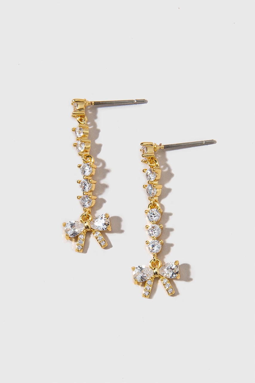 Beth Delicate Linear Crystal Bow Drop Earrings