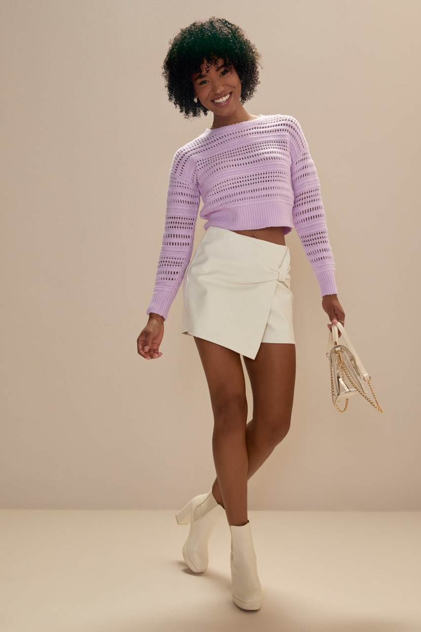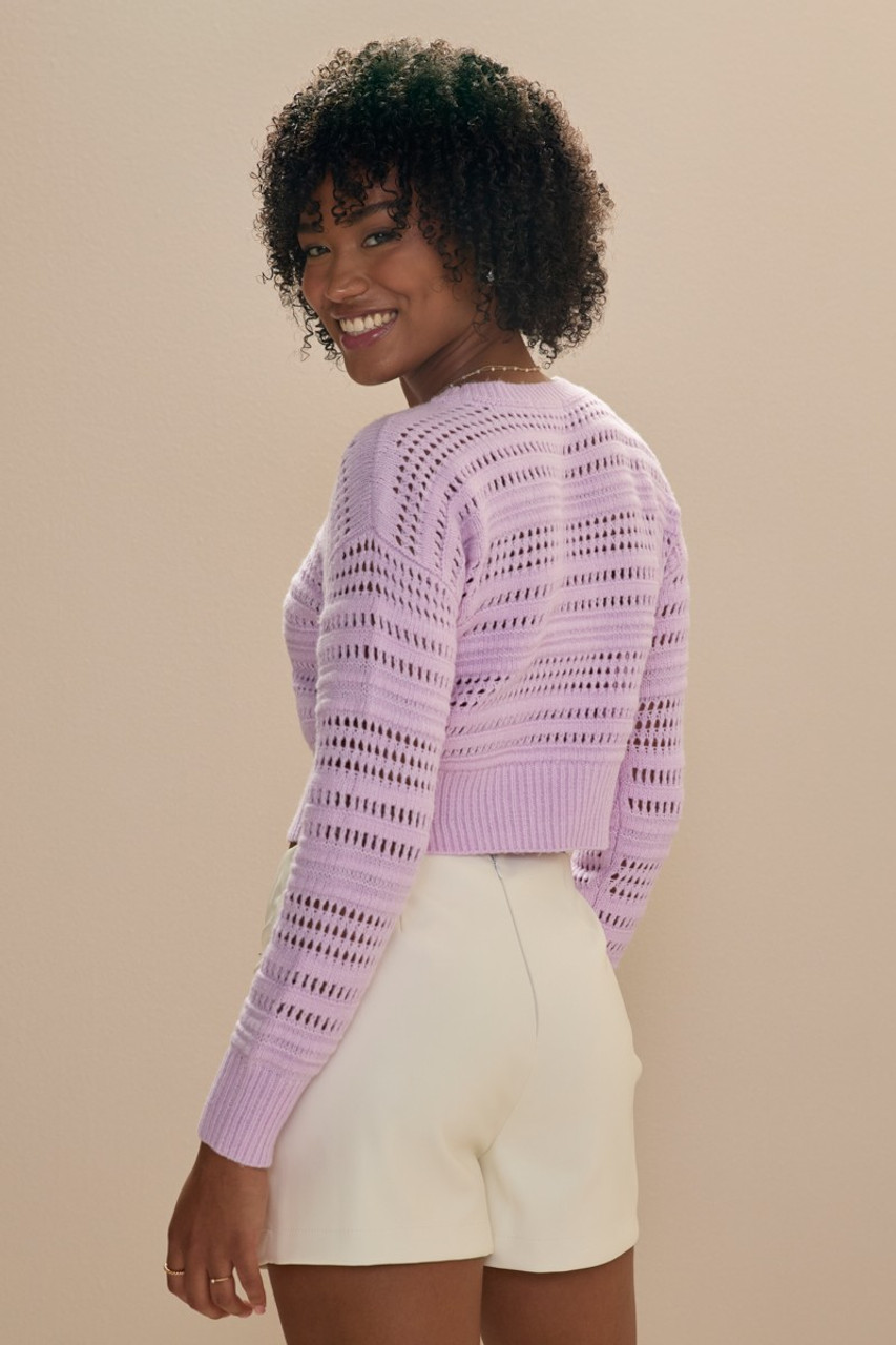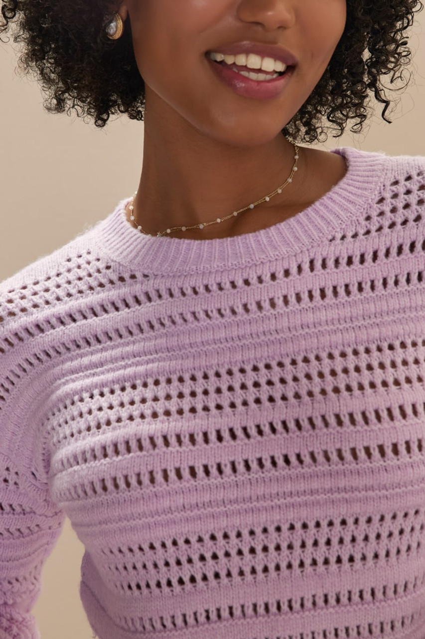 Clarissa Crewneck Pointelle Crop Pullover Lavender