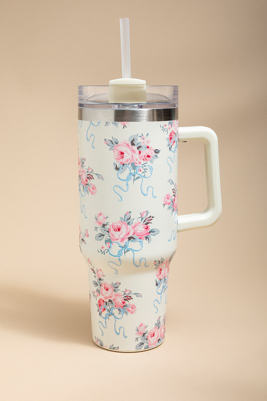 Creme Rose Pattern 40oz Tumbler