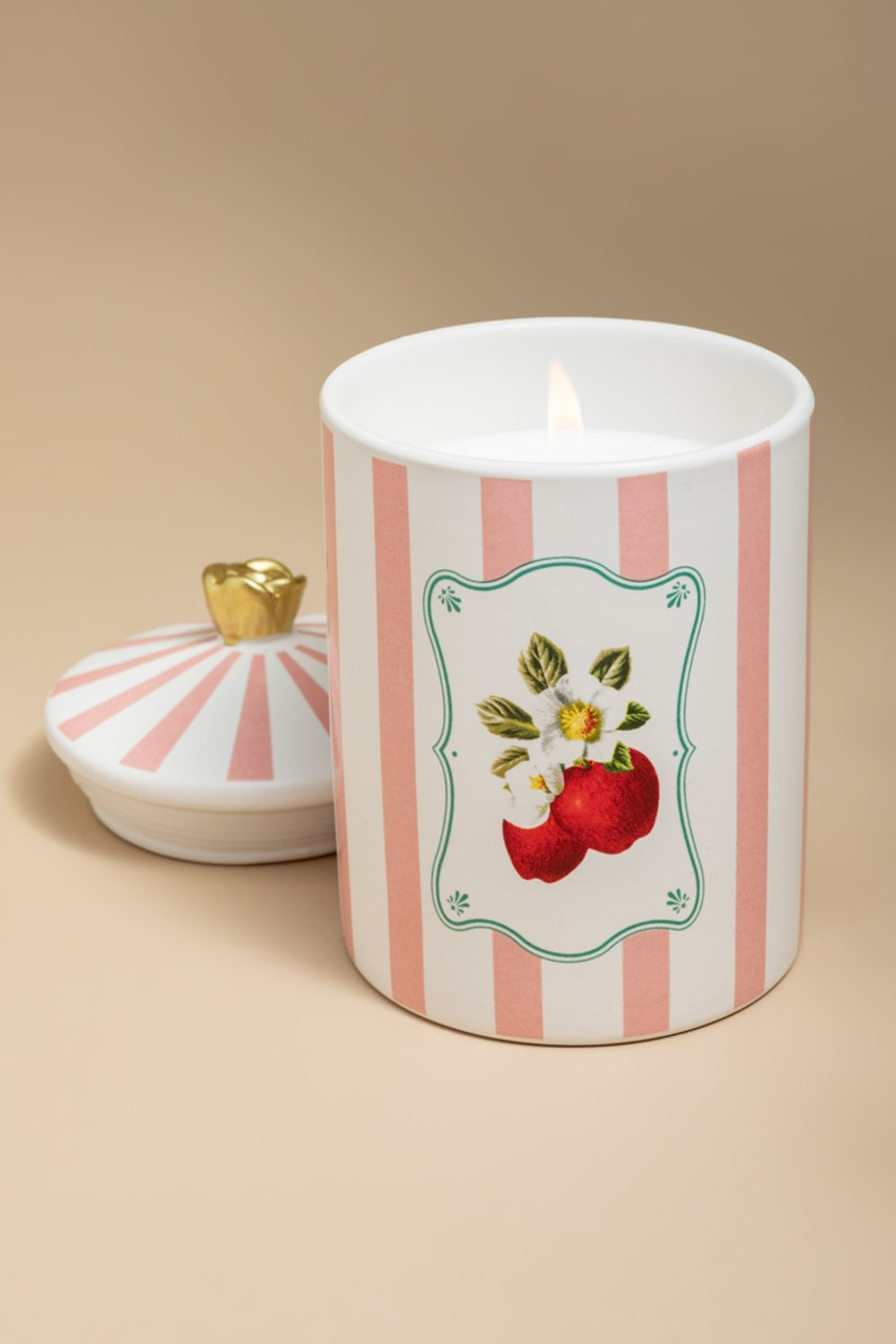 – Add some sweetness to your space with this cute apple blossom candle. Notes: apple blossom, crisp white pear, white jasmine, bergamot, and warm amber musk.