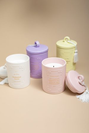 – Add a touch of spring to your space with this warm scented candle. Notes: Warm rose, white floral jasmine, ambered caramel, and soft vanilla woods.