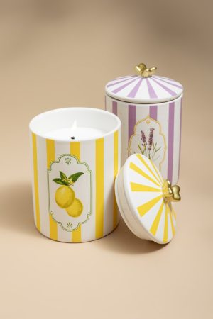 – Add some sweetness to your space with this cute lemon scented candle. Notes: tart citrus peel and fresh lemon wedges.
