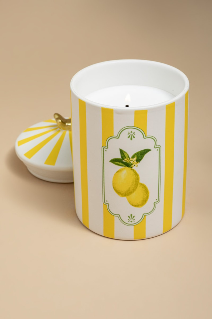 – Add some sweetness to your space with this cute lemon scented candle. Notes: tart citrus peel and fresh lemon wedges.