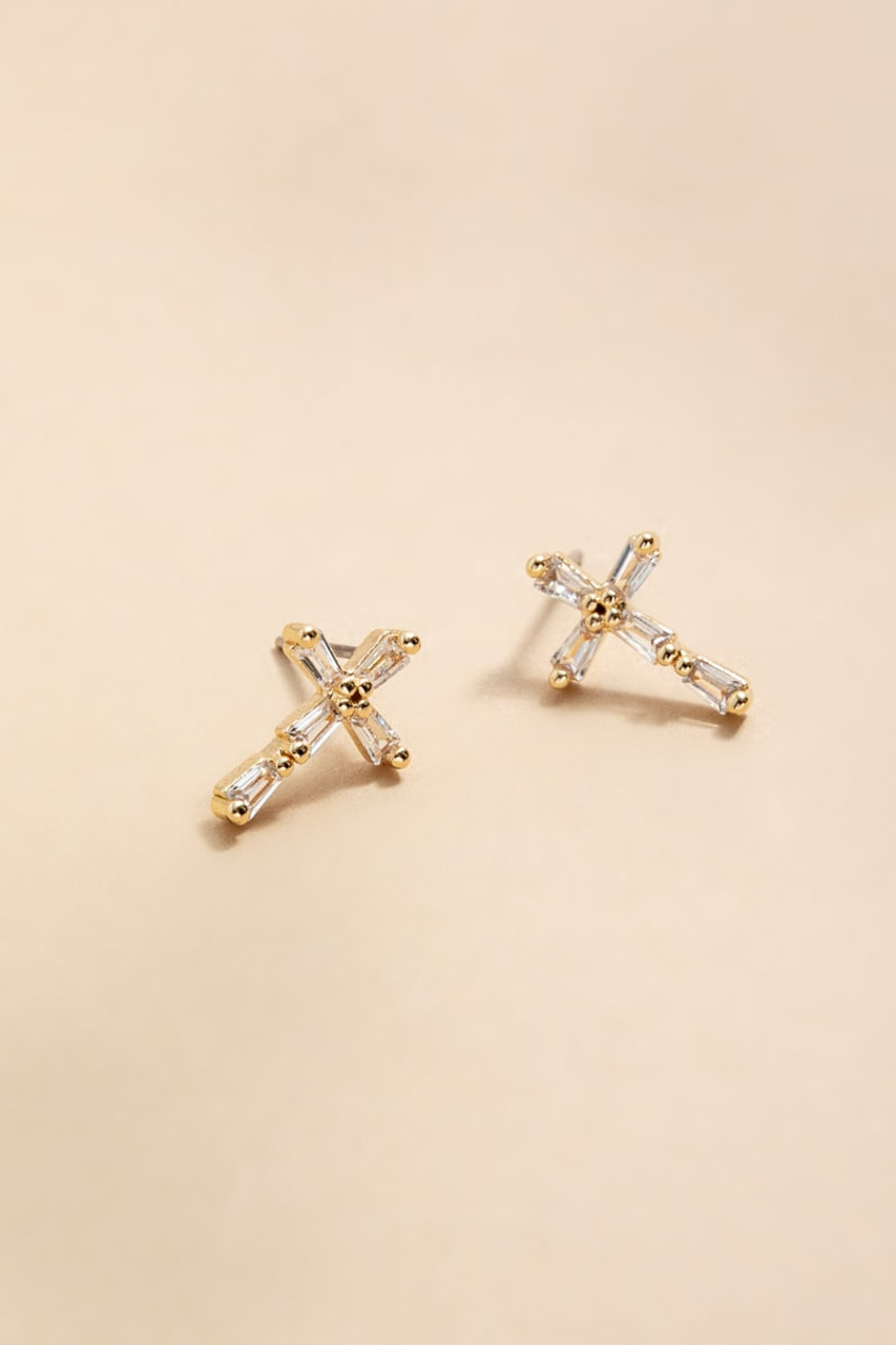 Elma Baguette Cross Stud Earrings
