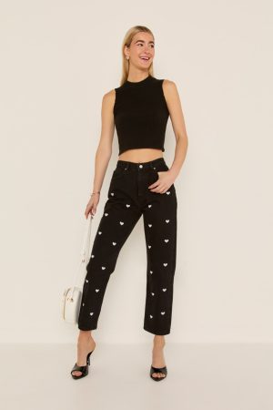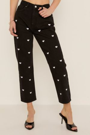 Emily Heart Embroidered Straight Leg Denim Jeans