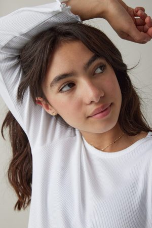 – It’s all about the details with this lettuce edge hem! Elevate your basics with this super soft & cute long sleeve t-shirt