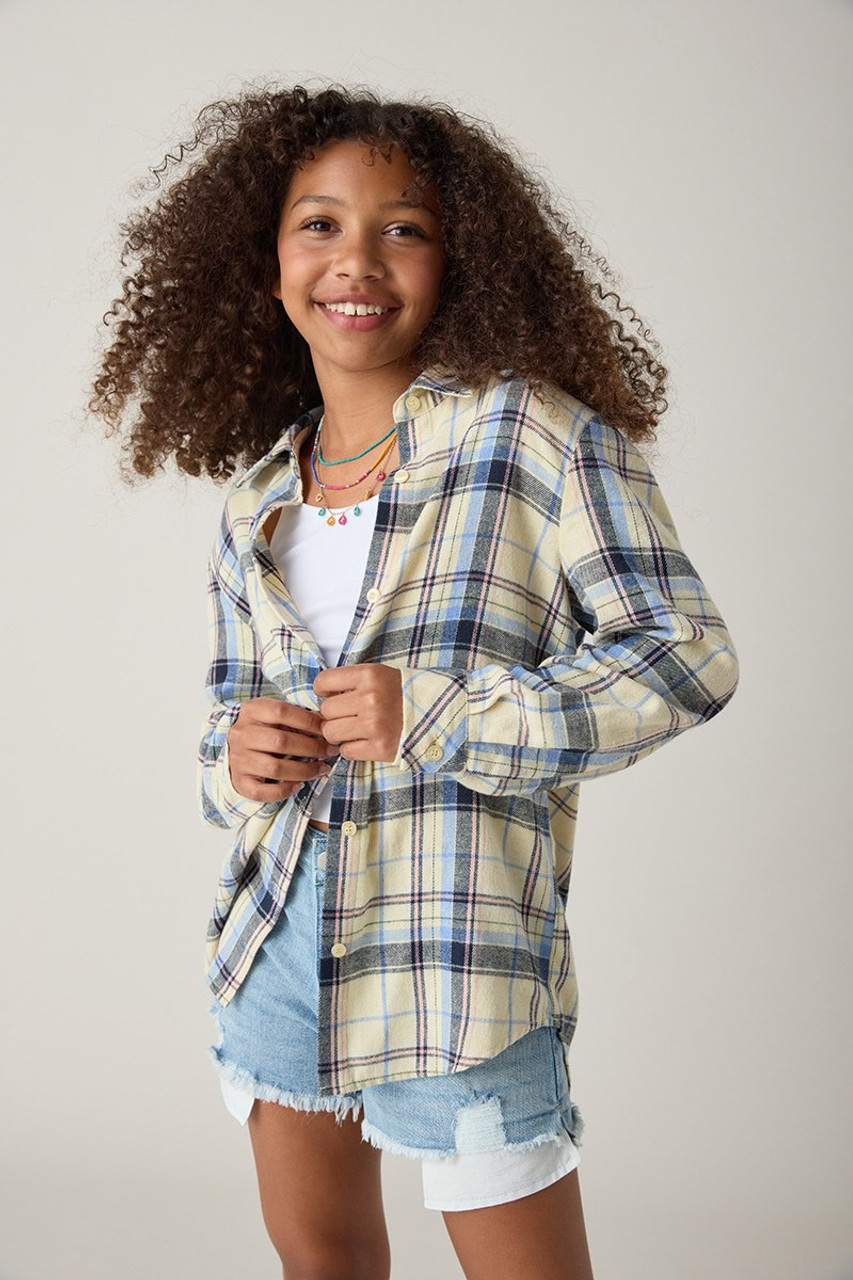 – Soft cotton flannel shirt that features a collar, long sleeves with button cuffs, and button front closure.
