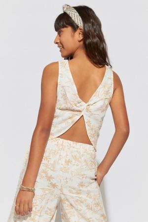 – Open back with twist detail.