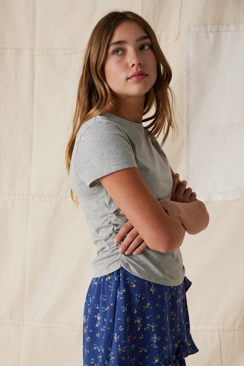 – Taking your beloved basic tee and adding a cinched side detail.