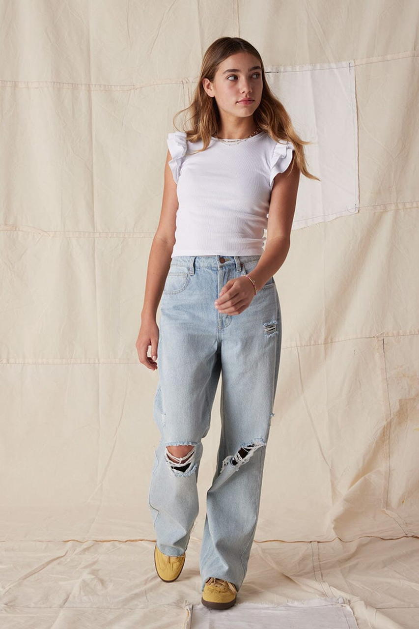 Hello Franki Sleeveless Ribbed Ruffle Tee for girls White