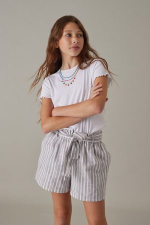Hello Franki Striped Paperbag Shorts for girls