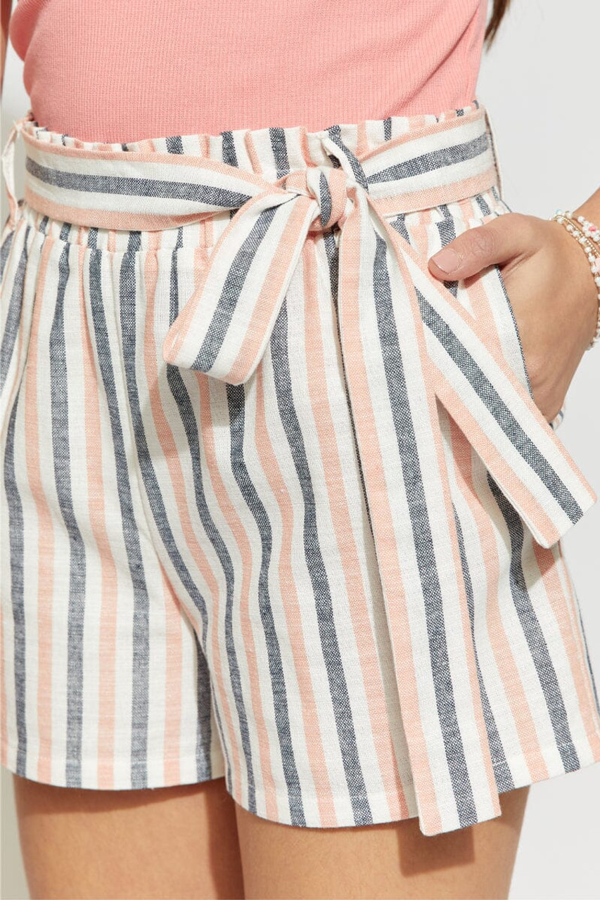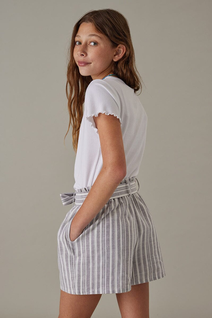 Hello Franki Striped Paperbag Shorts for girls