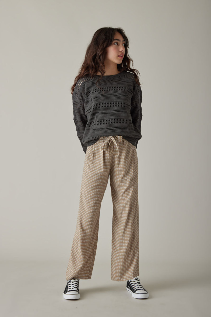 – A super soft fabric and wide-leg silhouette featuring a removable and adjustable belt, functional pockets, and an elastic waistband.