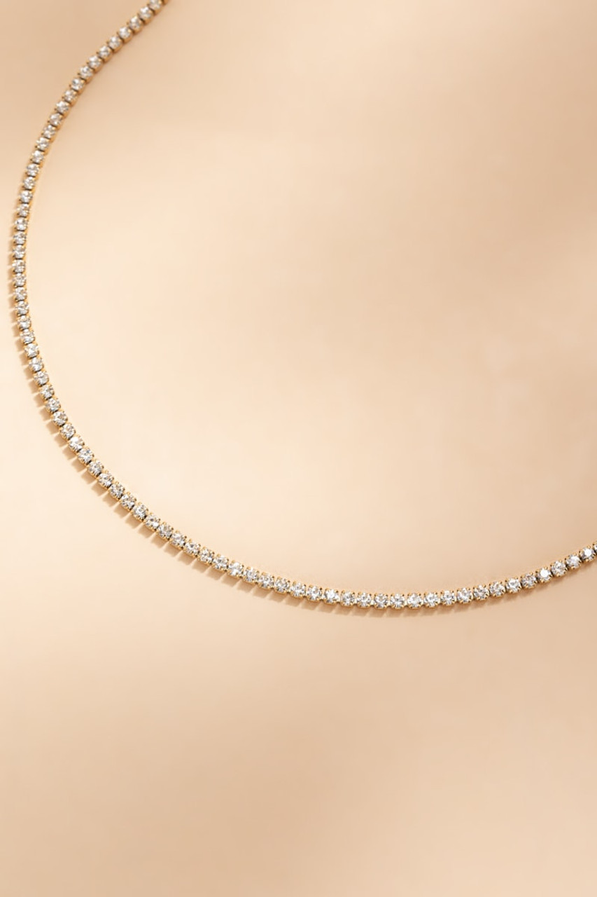 Iris Stainless Steel Gold Tennis Strand Necklace