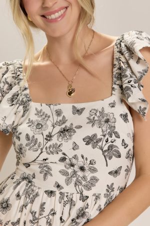 Jacklyn Ruffled Postcard Print Mini Dress