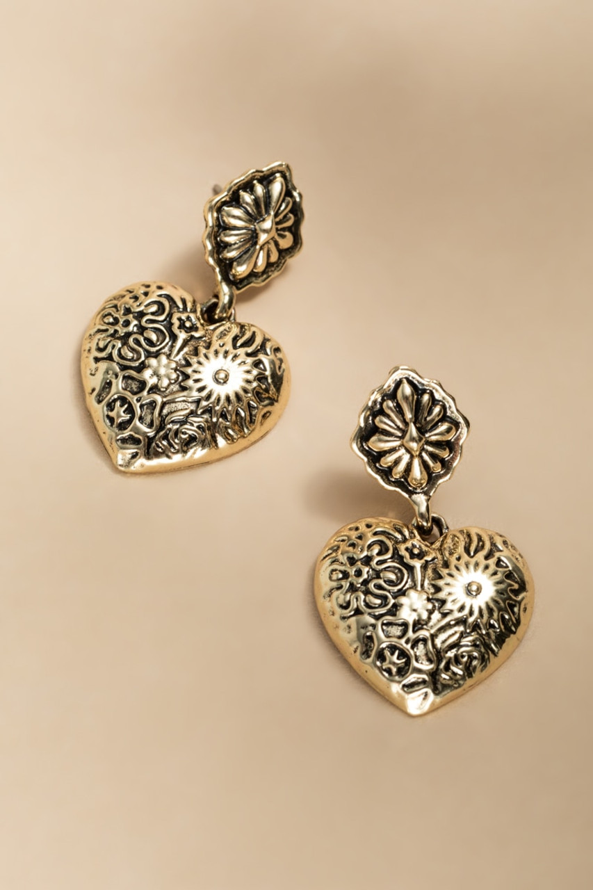 Kasey Embossed Vintage Heart Drop Earrings