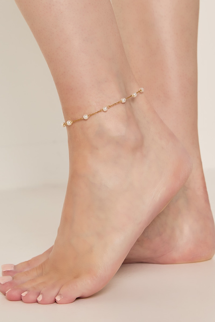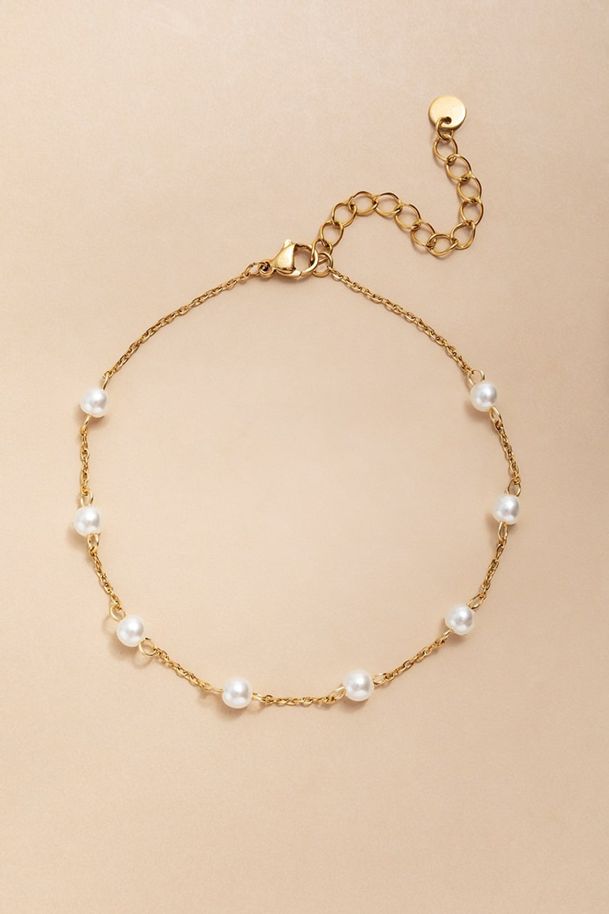 Kirsten Stainless Steel Pearl Station Anklet