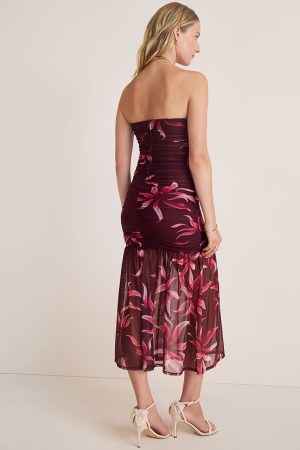 Liz Floral Mesh Strapless Midi Dress