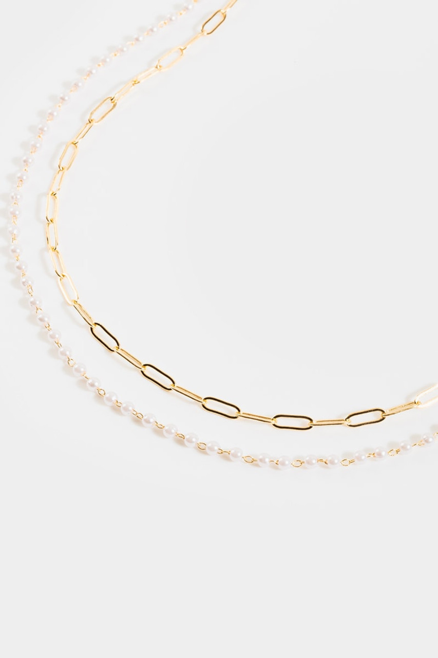 Loni Paper Clip Pearl Necklace