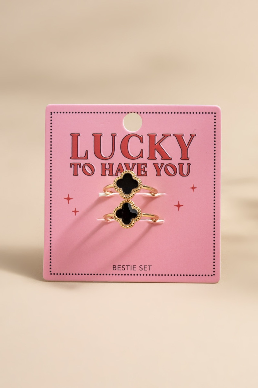 Lucky To Have You Carded Adjustable Clover Ring Set