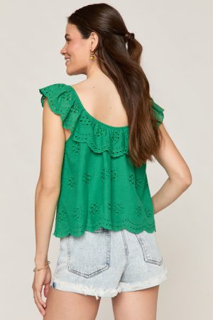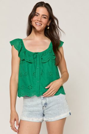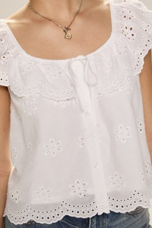 Marcy Scalloped Hem Eyelet Top