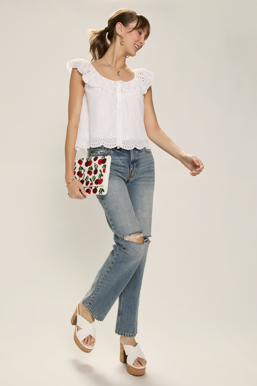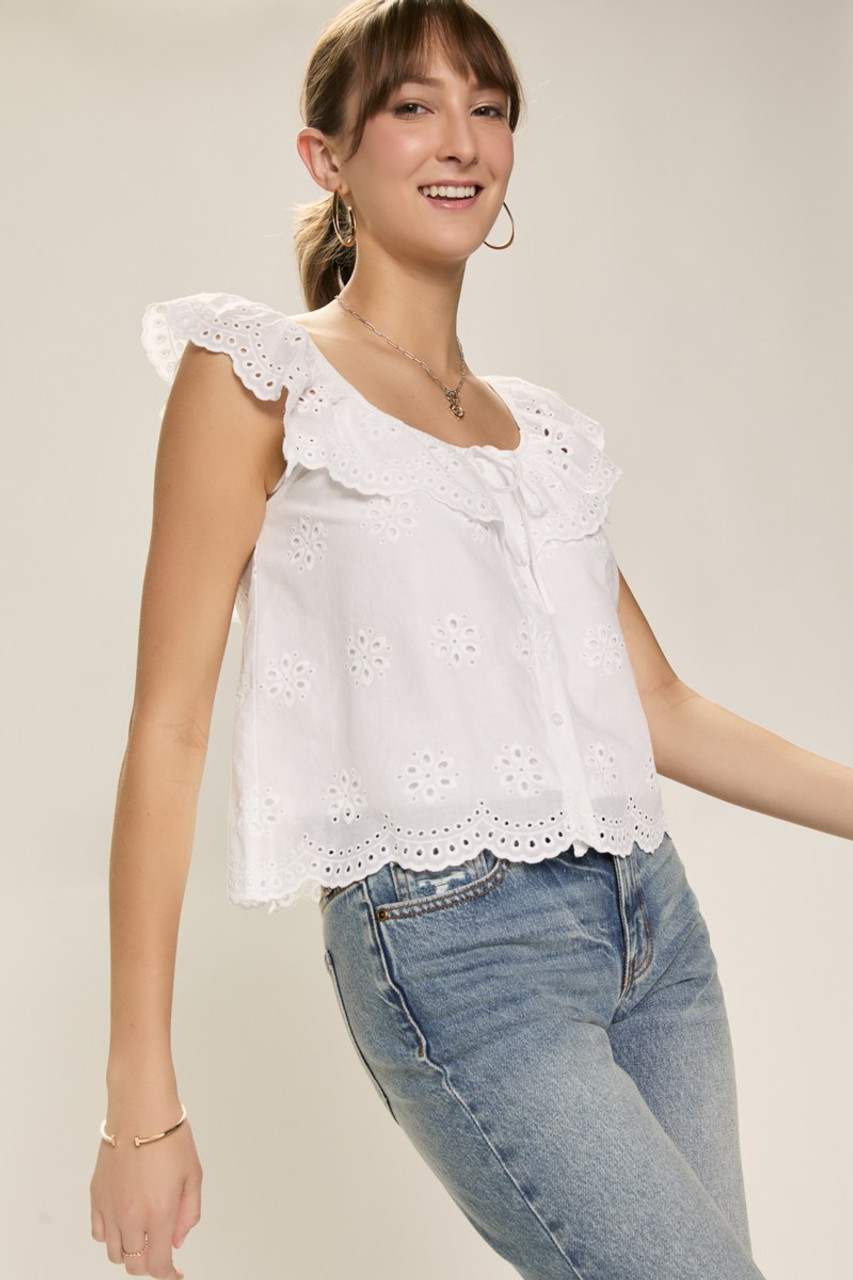 Marcy Scalloped Hem Eyelet Top