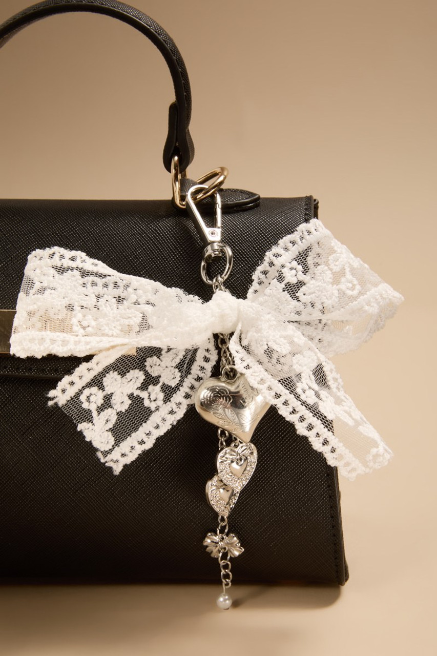 Margie Lace Bow And Heart Bag Charm