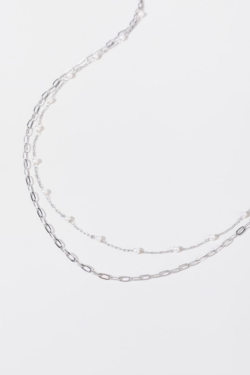 Melissa Layered Chain Link And Pearl Station Silver Necklace