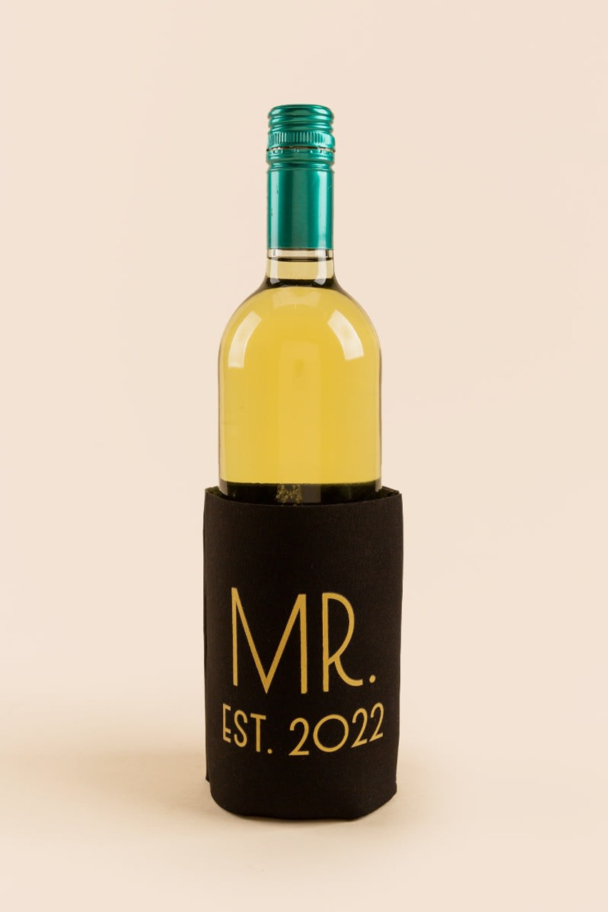 – Fits a standard size wine bottle – Product Text: Mr. Est. 2022 – Features Art Deco Inspired Font – Imported