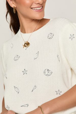 – Embroidered Seashell Details