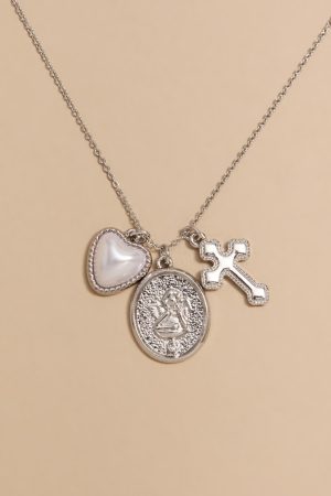 – 3 Charms: Coin, Opal Heart, and Cross