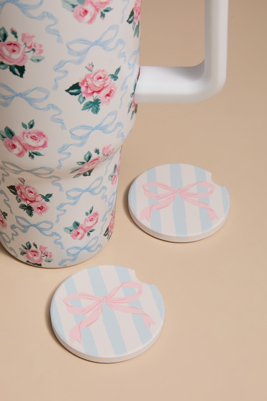 Striped Ribbon Print Car Coaster Set