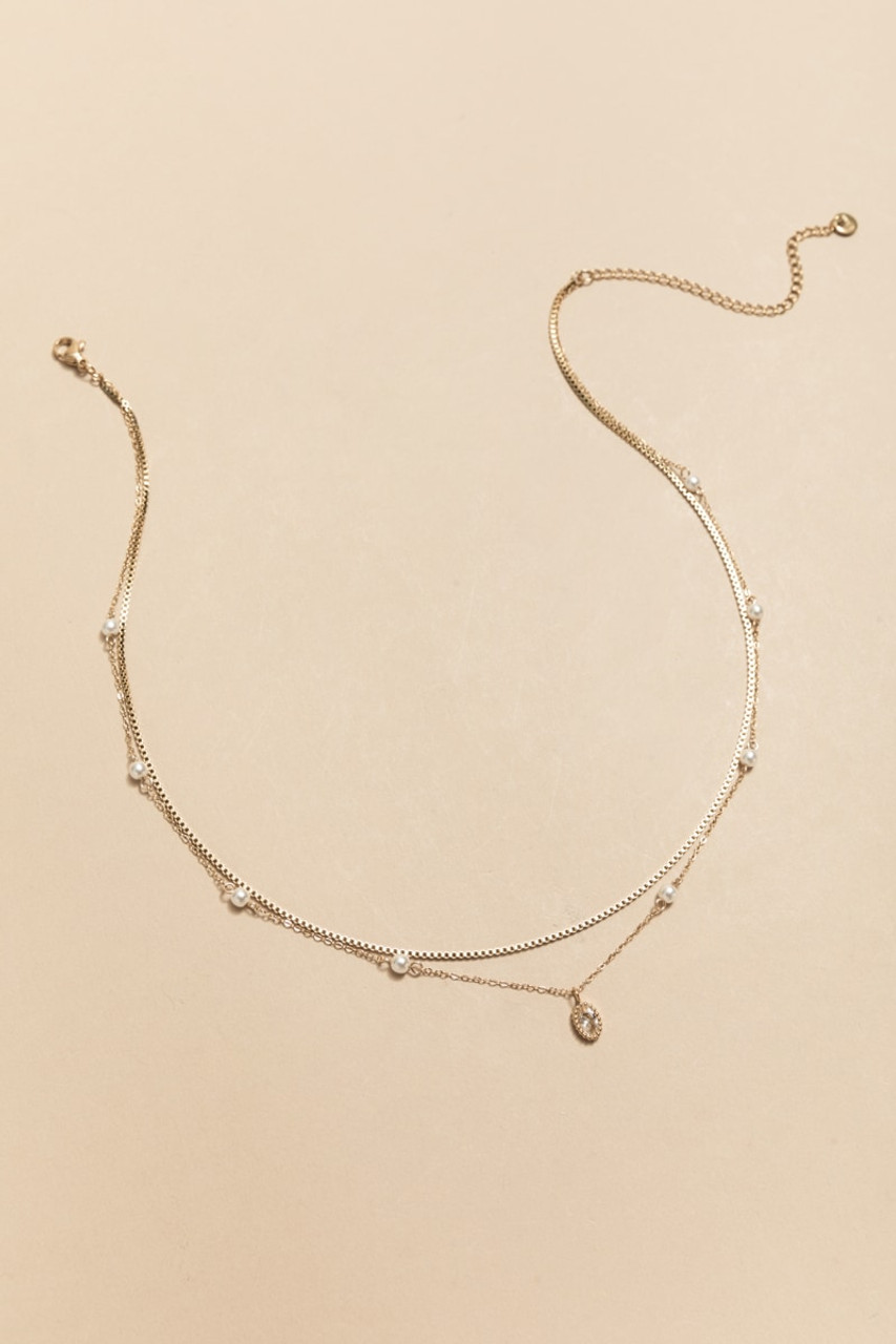 Thelma Stainless Steel Pearl Station Pendant Necklace