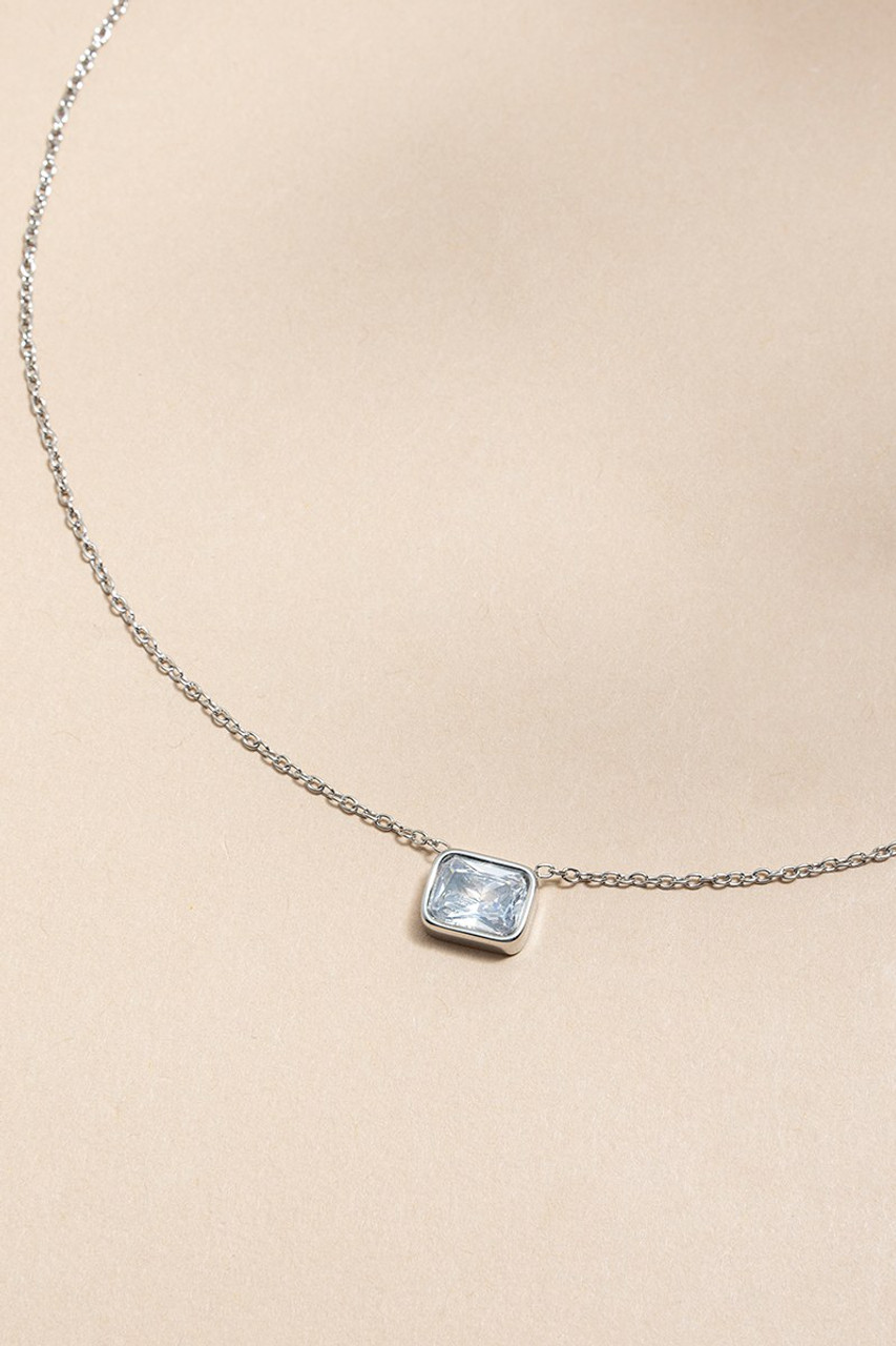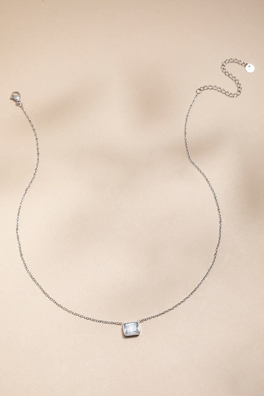 Tina Stainless Steel Silver Crystal Pendant Necklace