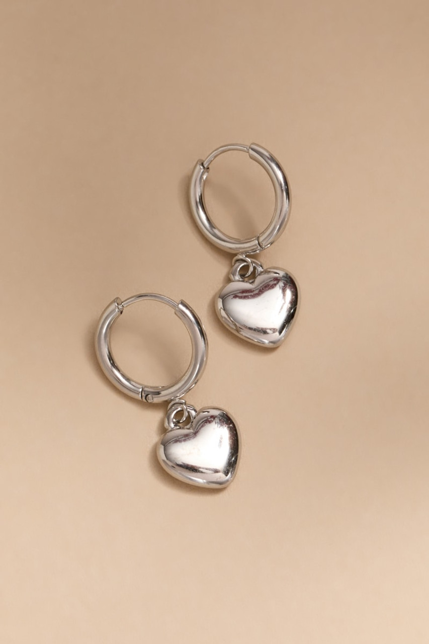 Ursula Stainless Steel Heart Charm Hoop Earrings