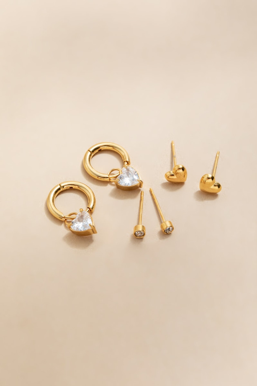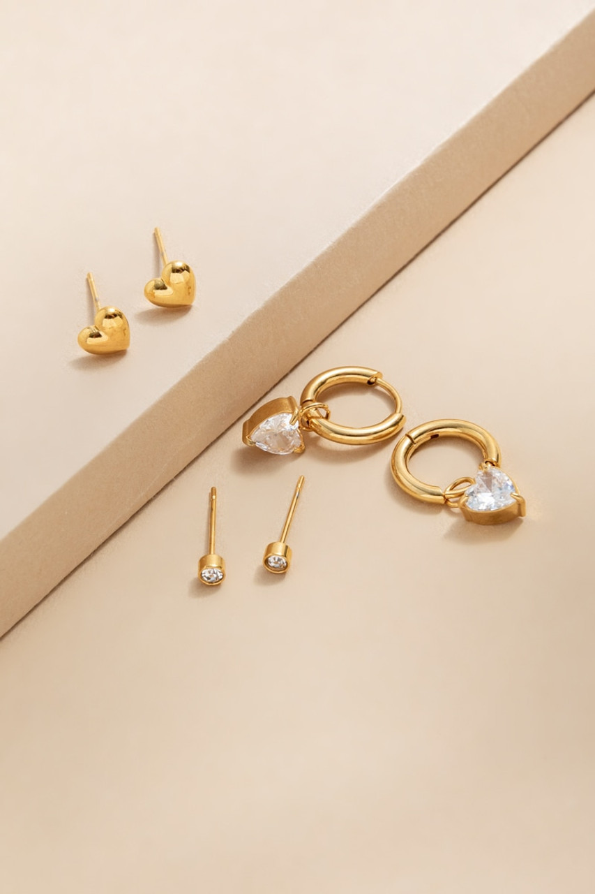 Vera Stainless Steel Heart Earring Set
