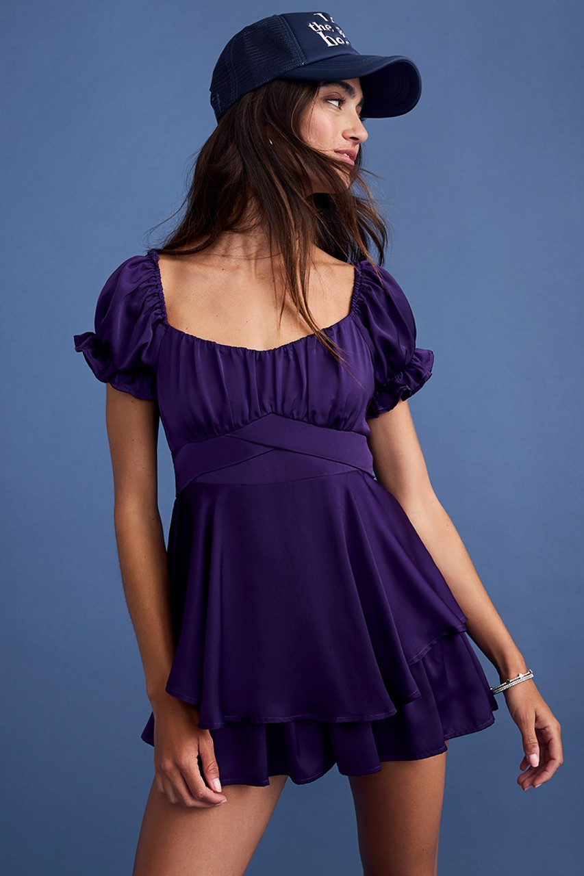 - Short puff sleeves with elasticized ruffle cuffs.